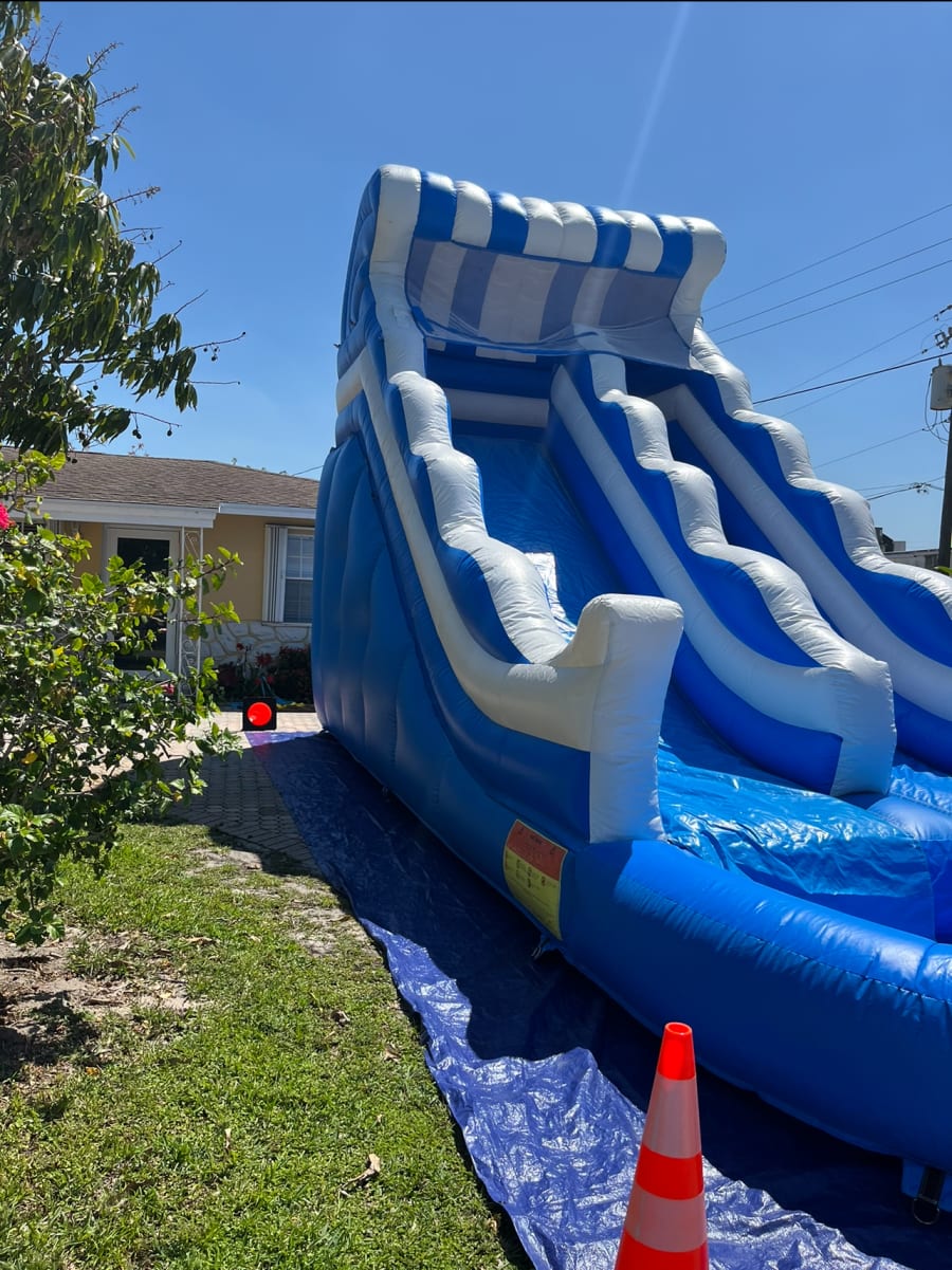 Whether you're hosting a party in Hollywood, Miramar, or Aventura, this Blue Wave waterslide is sure to be a hit! 🎈🌴 Make a splash at your event and create lasting memories with this exciting rental option.
